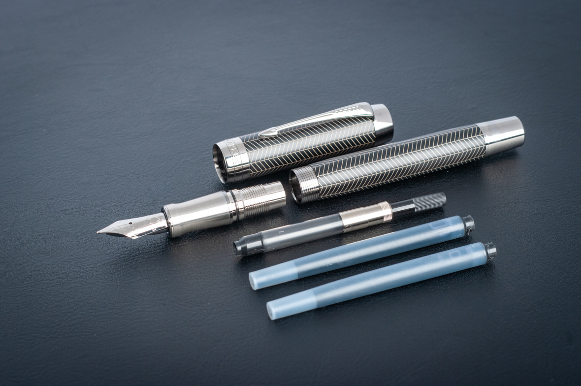 Перьевая ручка Parker Duofold Prestige Centennial Black Chevron CT от официального дилера Parker в Каменск-Уральске. Вы можете дополнительно заказать гравировку, которая подчеркнет Вашу оригинальность и придаст памятность статусному подарку. Все ручки Паркер поставляются в фирменном футляре.
